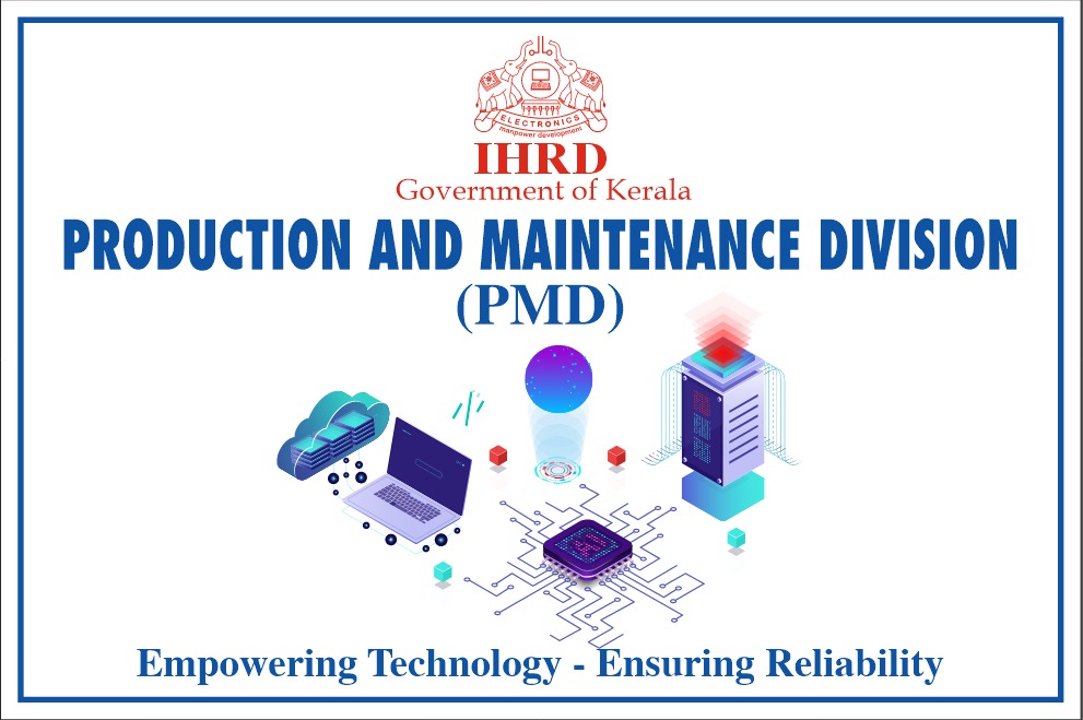 Production and Maintenance Division in the Regional Center is functioning for manufacturing and servicing electronic products. PMD is providing the service of Comprehensive Annual Maintenance for Computers and peripherals in reputed Government Departments and organizations at the lowest rate approved by the State Government. R&D wing also develop and supply Laboratory Equipment for Engineering Institutions in Kerala.